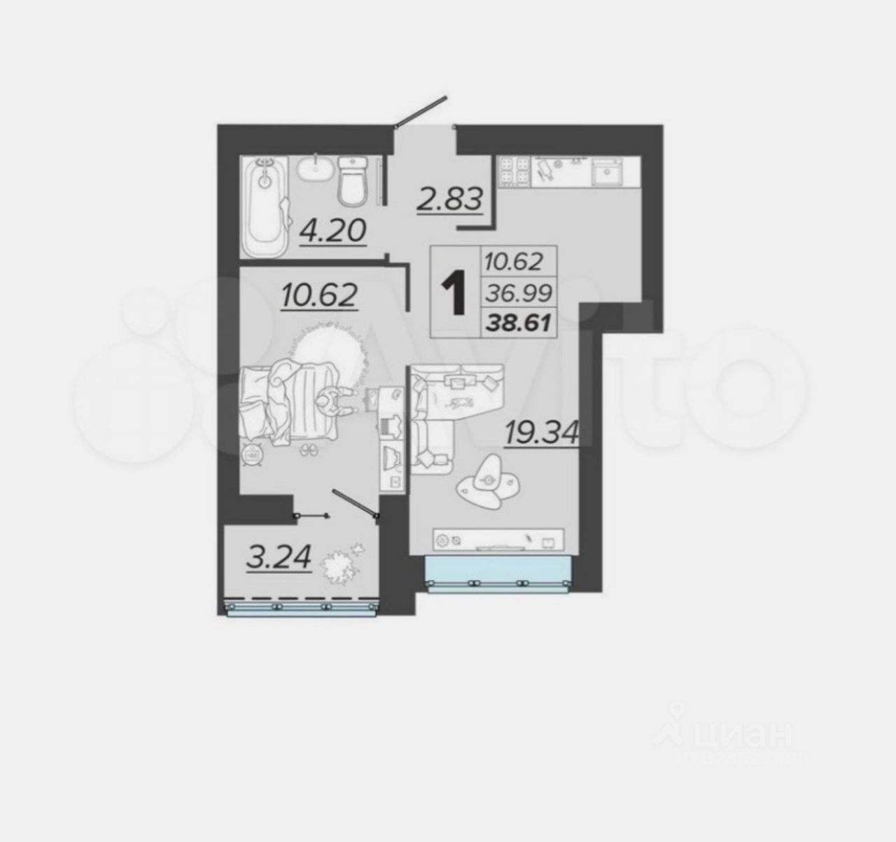 38,61 м²