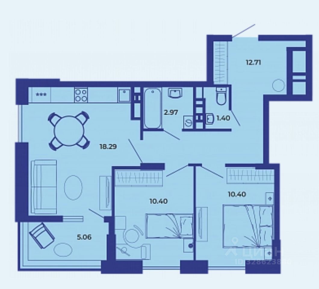 Площадь кухни18,3 м²