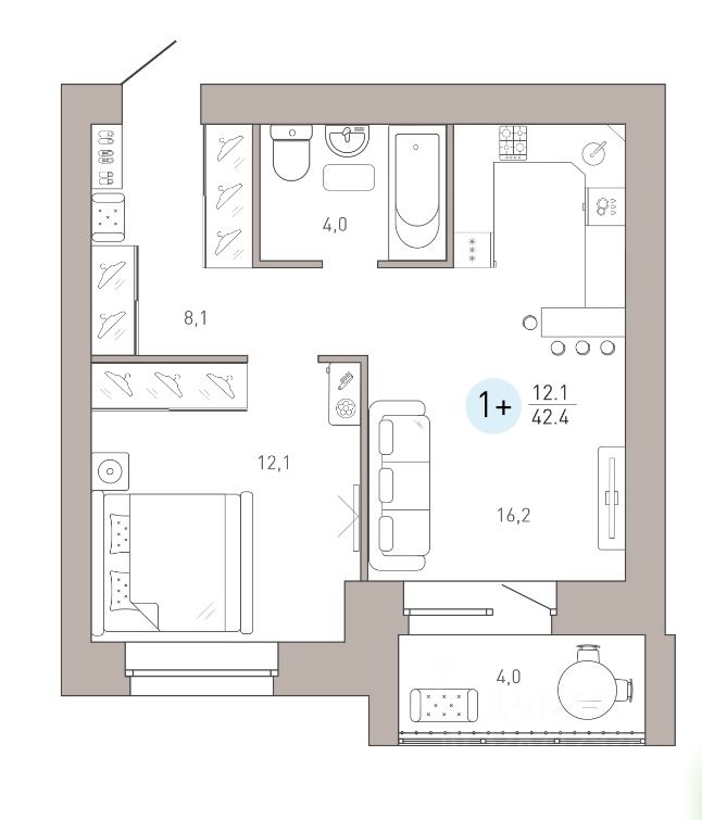 Общая площадь42,4 м²