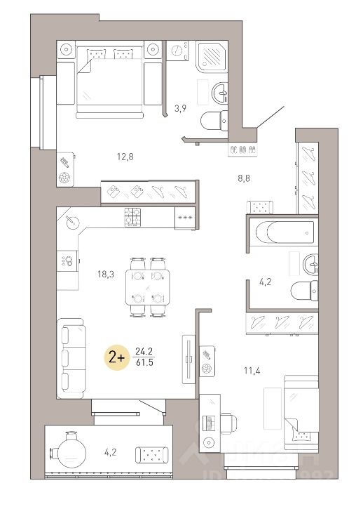 Общая площадь61,5 м²