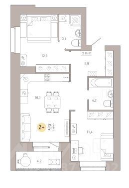 Площадь кухни18,3 м²