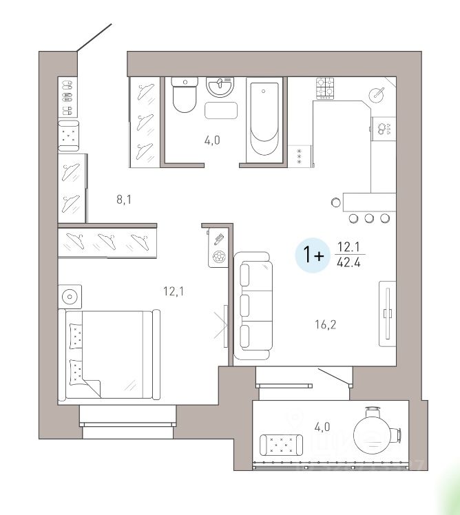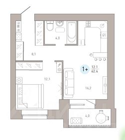 Общая площадь42,4 м²