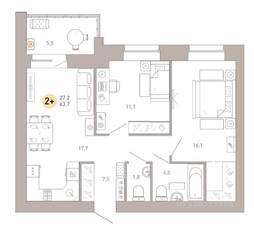 Общая площадь63,7 м²