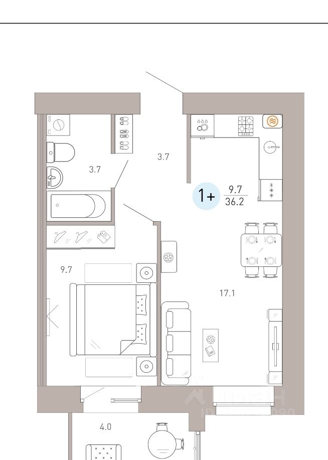 Общая площадь36,2 м²