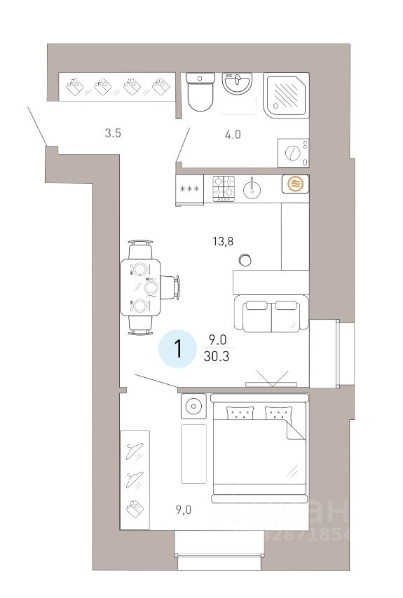 Общая площадь30,3 м²
