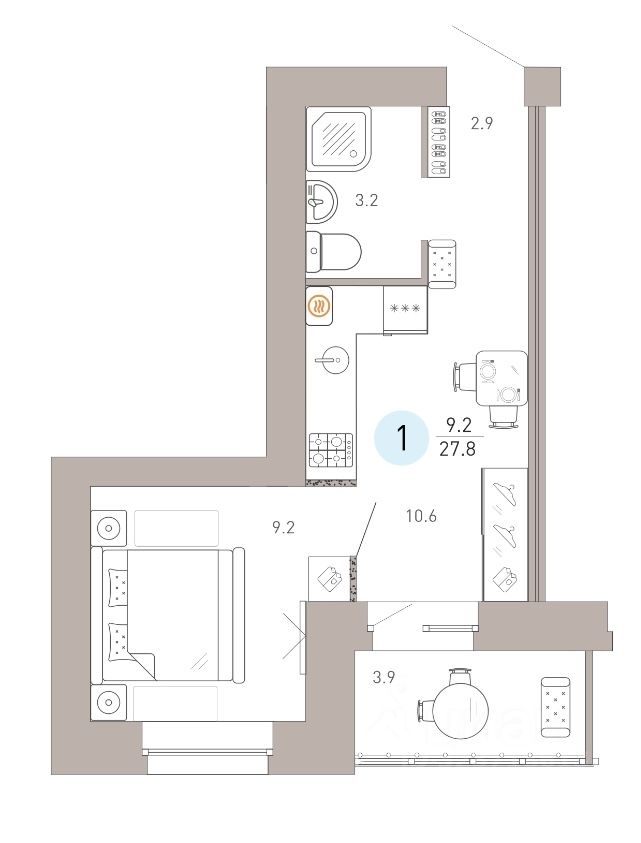 Общая площадь27,8 м²