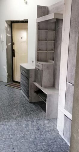 В квартире произведен частичный ремонт. На полу плитка и ламинат. Стены подготовлены под поклейку обоев. В ванной нанесена гидроизоляция ( фото черного цвета)