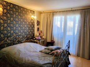 Квартира имеет распашную планировку и окна с видом во двор и на частный сектор, что создает приятную атмосферу покоя и уединения. В квартире имеются два санузла: один с угловой гидро-массажной ванной и с современной душевой системой.