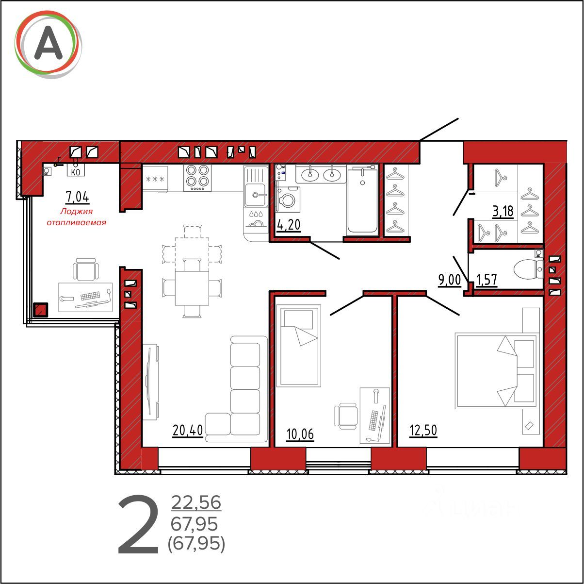 Предчистовая отделка — выровненные белые стены, выводы под коммуникации, установлены окна и металлические двери, залита стяжка пола.