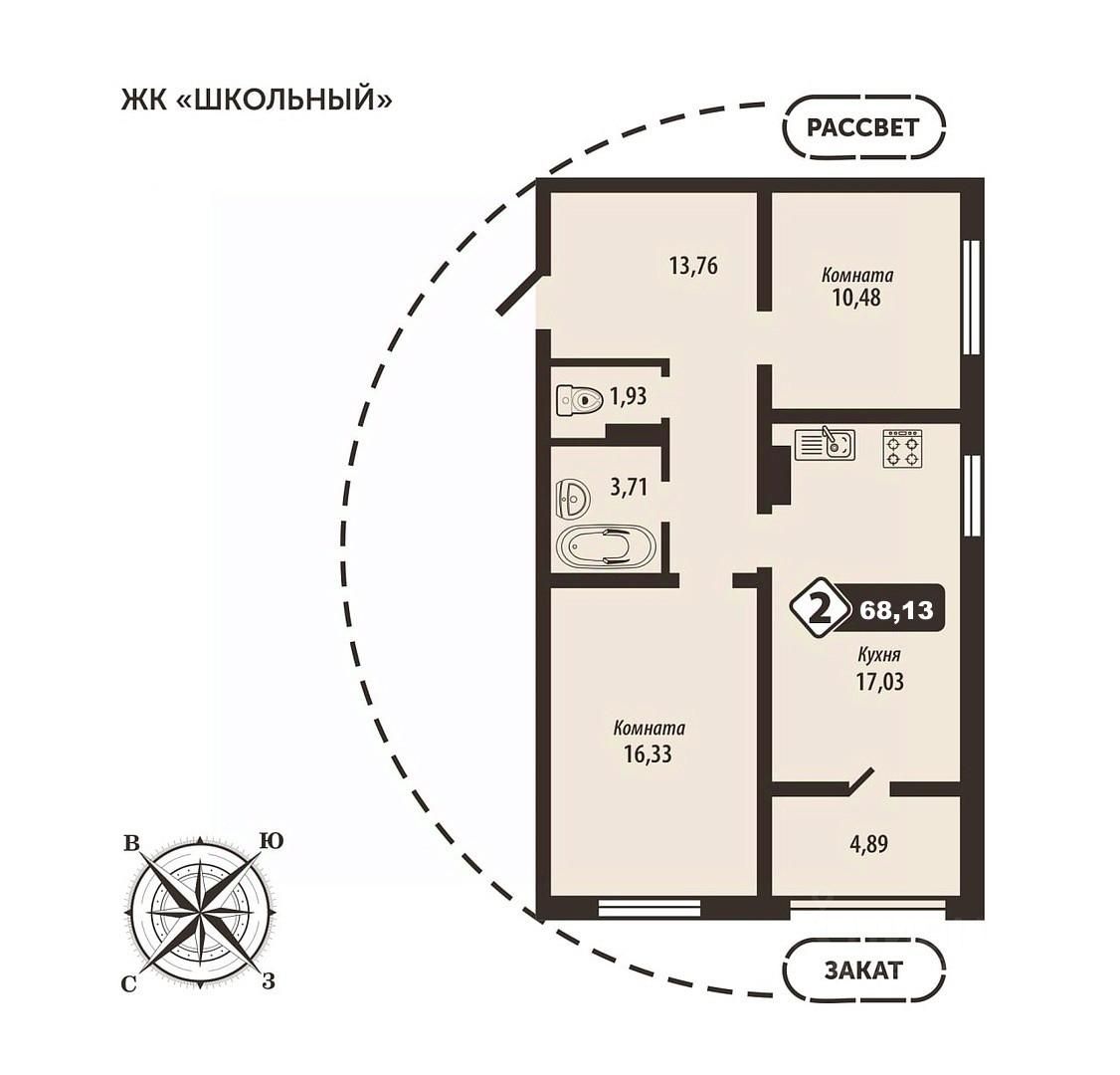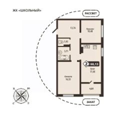 2-комн. квартира, 68,13 м²