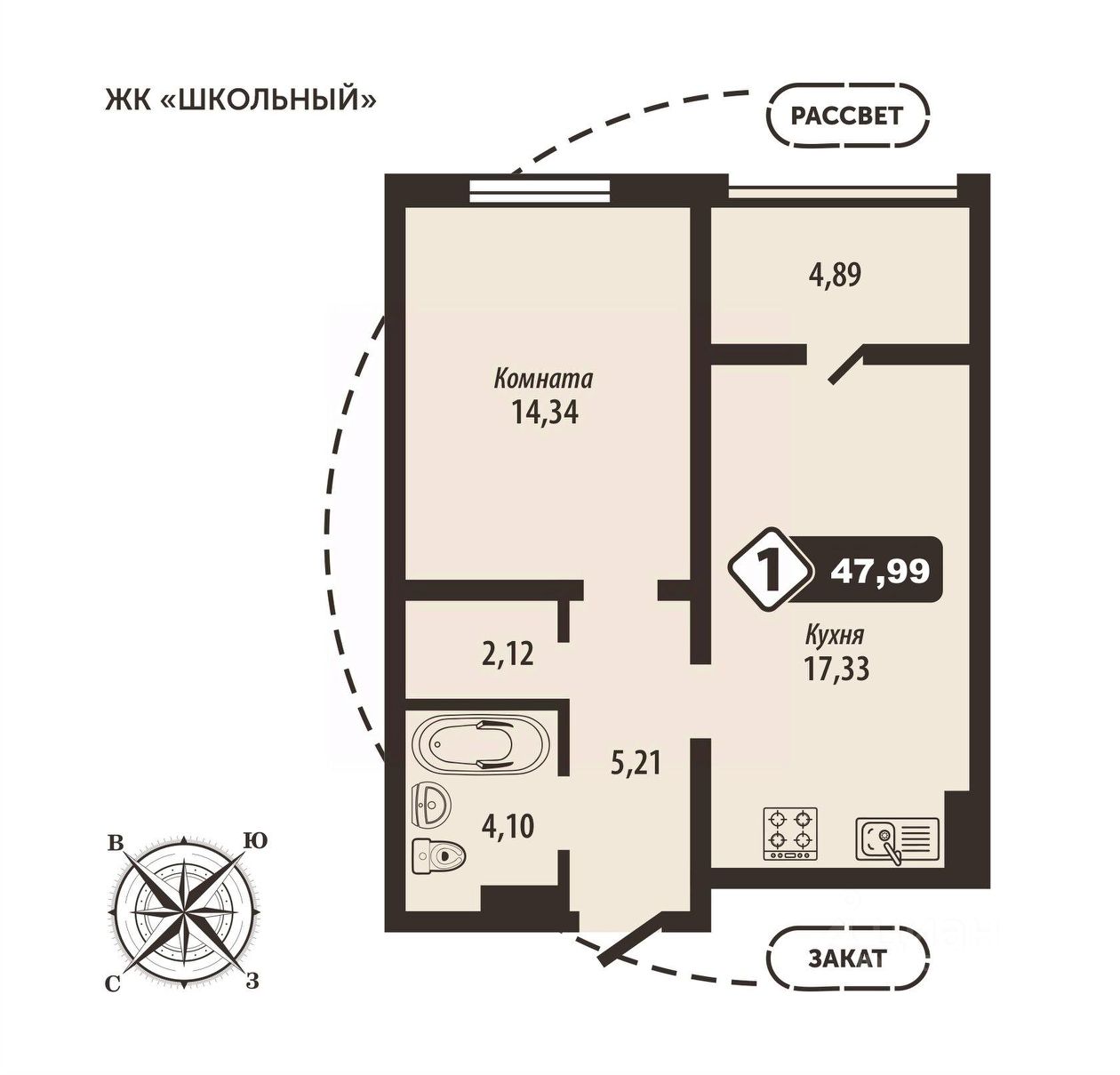 1-комн. от 47,99 м²