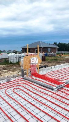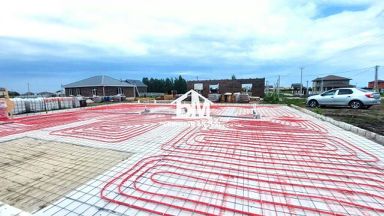- Водяной теплый пол (разводка по всему дому), штукатурка и шпаклевка стен (под покраску/обои), электрический котел, бойлер