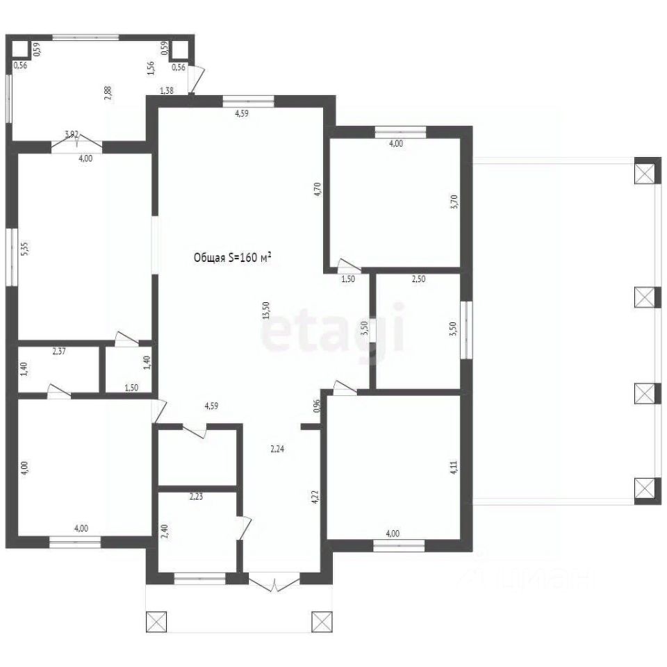 - Общая площадь дома 160 кв.м., участок 9 соток