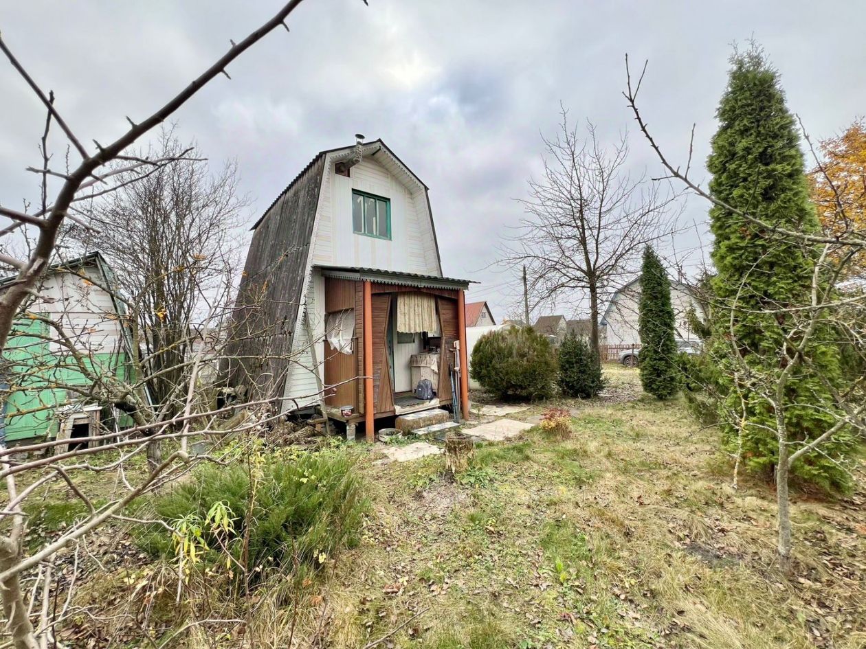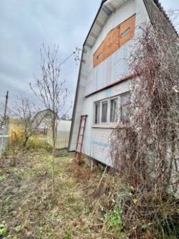 Домик дерево, два этажа, уютный, печное отопление. Вода - скважина, свет есть, газ по границе участка.