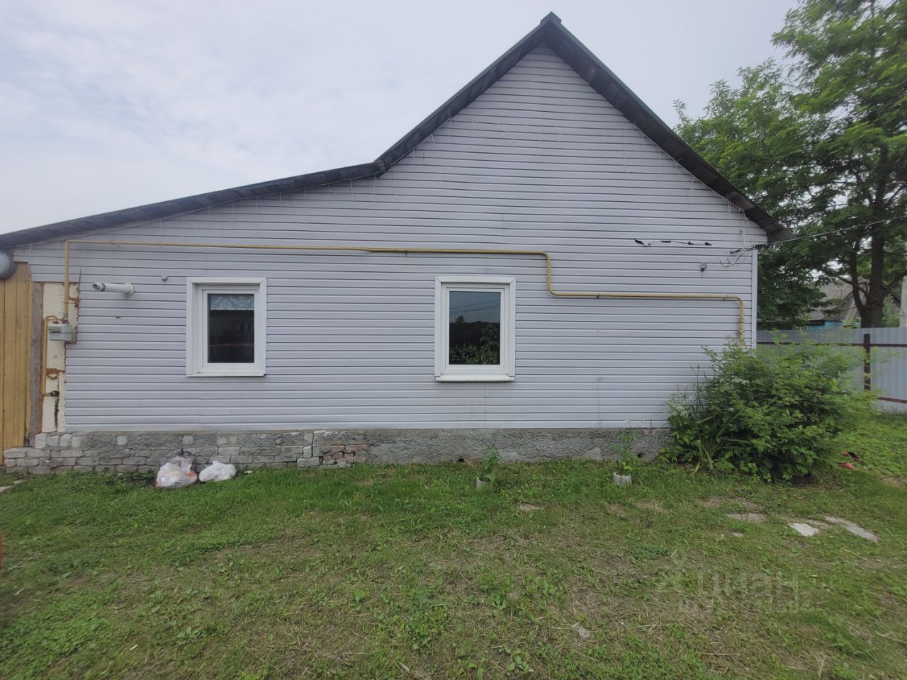 Одна часть дома-бревно, более новая часть- кирпич, полностью облицован сайдинговыми панелями. Крепкая кровля и прочный фундамент!