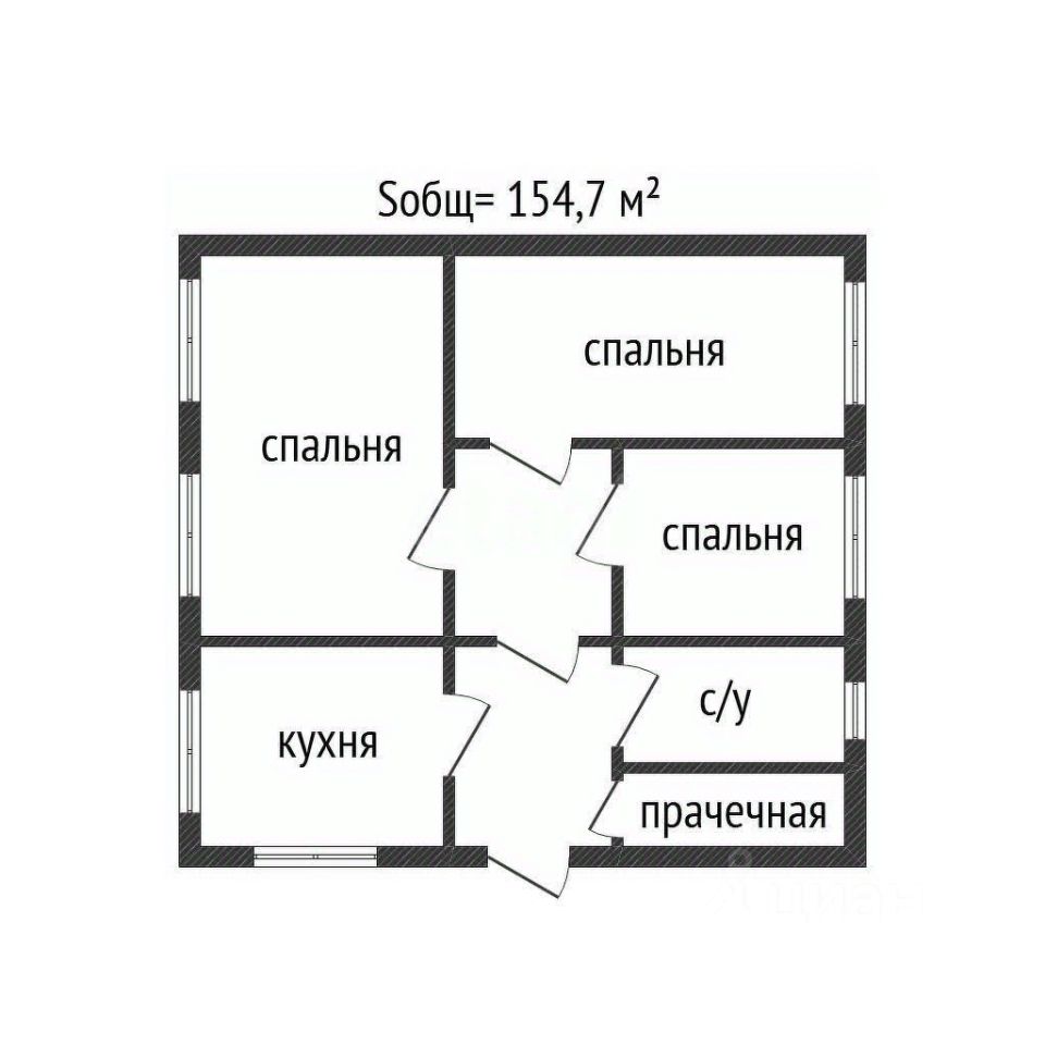 Площадь дома составляет 154.7 м², он включает четыре изолированные комнаты, что обеспечивает комфортное размещение большой семьи и создает условия для личного пространства каждого.
