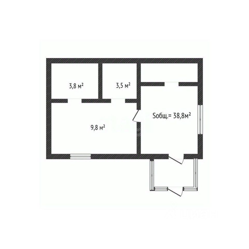 Общaя площадь — 38,8 м кв.