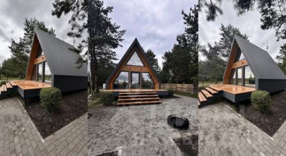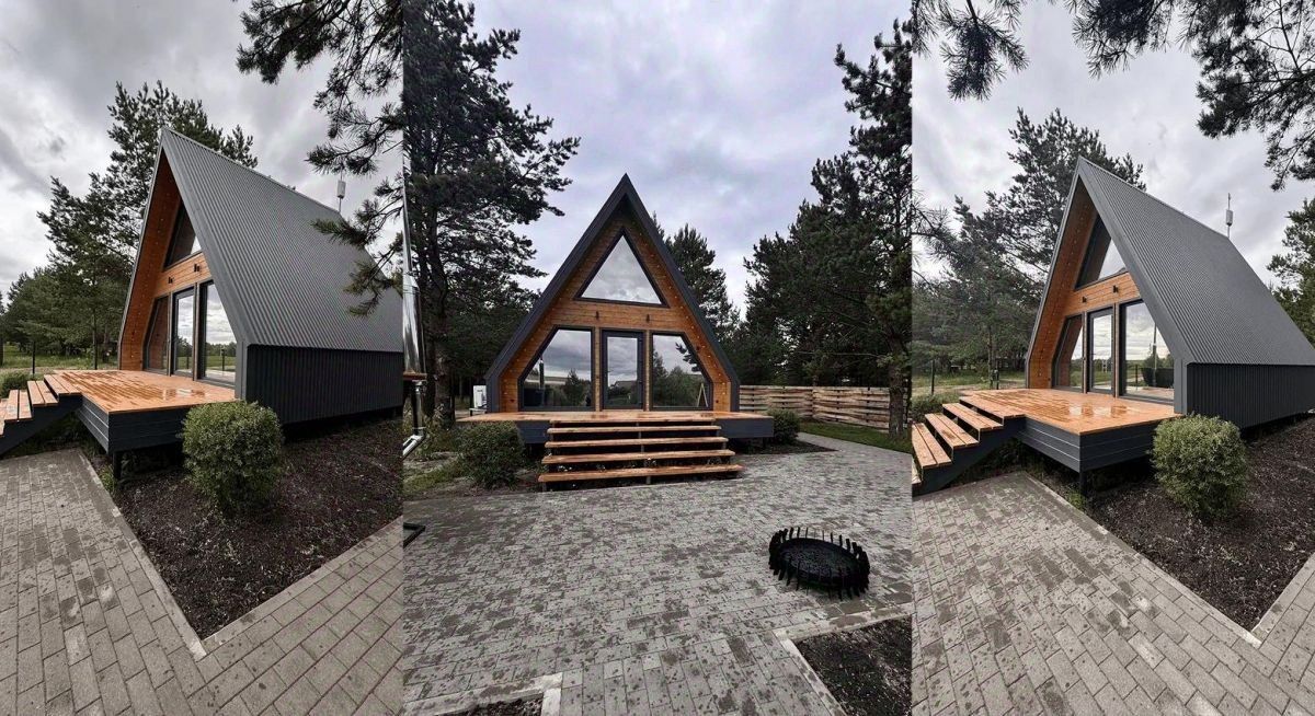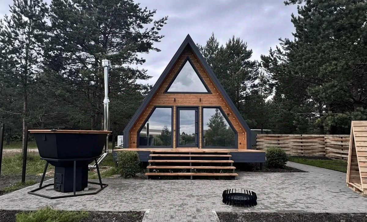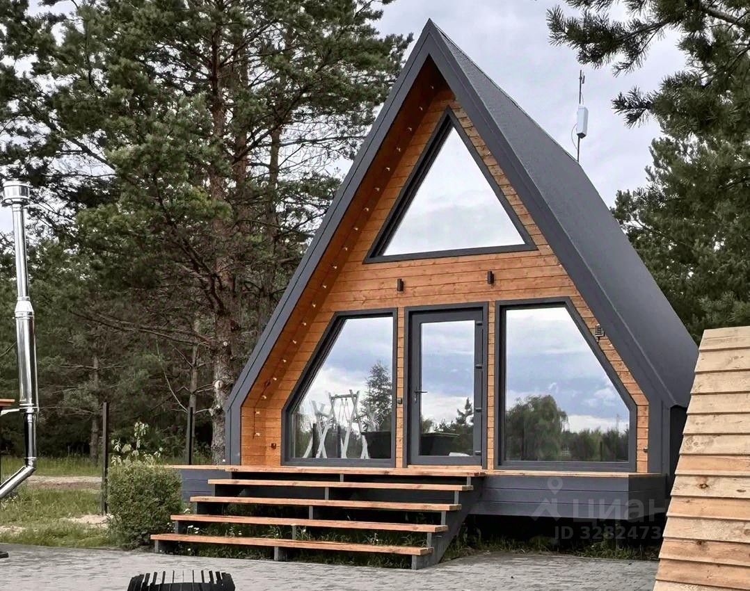 А-Фрейм с террасой и ремонтом под ключ в живописном поселке недалеко от Брянска.