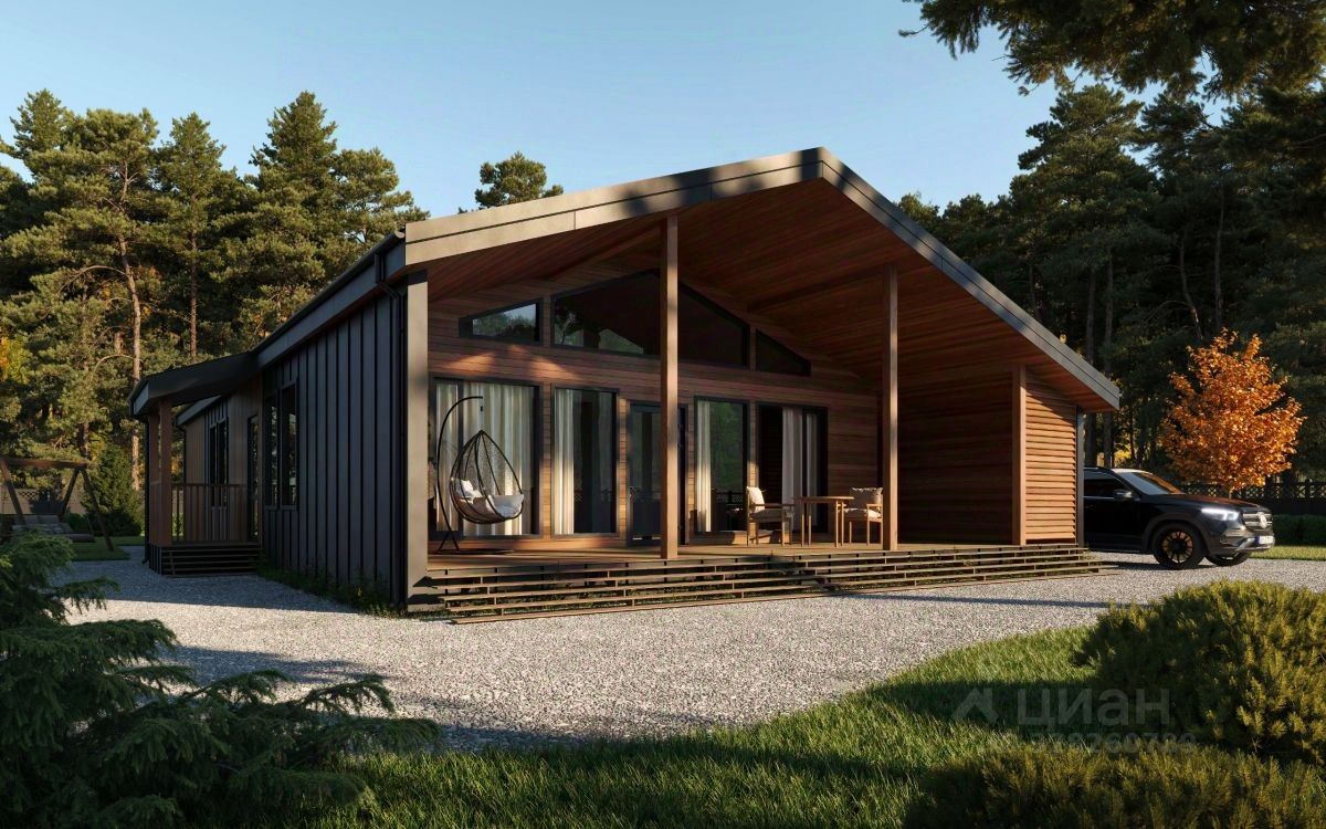 Современный каркасный дом в стиле барнхаус 178 м2 на участке 17 соток в живописном поселке Диво недалеко от Брянска.