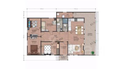 Планировка дома включает:4 спальни;кухня-гостиная;2 санузла;топочное помещение;холл;прихожая.Цена указана за внешний контур дома, в него входит:Фундамент - свайно-винтовой 108х2500 мм.Основание дома. Обвязка основания сухая строганная доска (влажность 12-14%) 45х140 мм. (в 3 доски)Половые балки Сухая строганная доска (влажность 12-14%) 45х190 мм., с шагом 580 мм.Силовой каркас капитальных стен: Вертикальные стойки сухая строганная доска (влажность 12-14%) 45х140 мм., шаг 580 мм. Укосины сухая строганная доска (влажность 12-14%) 45х140 мм. Подкладная доска (Лежень) сухая строганная доска (влажность 12-14%) 45х140 мм. Обвязочный верхний пояс сухая строганная доска (влажность 12-14%) 45х140 мм.Силовой каркас внутренних перегородок: Подкладная доска сухая строганная доска (влажность 12-14%) 45x90, 45х140 мм. Вертикальные стойки сухая строганная доска (влажность 12-14%) 45x90 и 45х140 мм., шаг 580 мм.Ригель несущих перегородок сухая строганная доска (влажность 12-14%) 45x90, 45х140 мм.Потолок: Потолочные балки сухая строганная доска (влажность 12-14%) 45х140 мм., с шагом 580 мм.Стропильная система. Стропильные лаги - сухая строганная доска (влажность 12-14%) 45х140 мм. или 45х190 мм. (от проекта), с шагом 580 мм. Конробрешётка 50мм брусок. Обрешётка сухая строганная доска (влажность 12-14%) 20х95 мм. с шагом не более 300 мм.Ветровлагозащита и пароизоляция. Гидро-ветрозащитная двухслойная мембрана - Изоспан АMВнешняя отделка фасада. Стены и фронтоны: Имитация Бруса камерной сушки 16х135 мм. Вентилируемый зазор - рейка (50x30 мм.) между каркасом и наружной обшивкой.Кровля. Металлочерепица 0,5 мм.: Гранд Лайн или Стинержи на выборКрыльцо (терраса, балкон)Свесы карнизные и фронтонные, выступы 400 ммПодшивка: Имитация Бруса камерной сушки 16х135 мм. АВНастил пола. Калиброванная доска сухая строганная 35х140 мм.Потолок. Евровагонка камерной сушки 12,5 мм. АВОкна ПВХ. Rehau 70 профиль Грация, двойной стеклопакет с энергосбережениемДверь входная металлическая (производство Россия). Металлическая с терморазрывомУчасток: 17 соток.