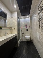 На 1-м этаже находится просторная кухня-гостинная-36.4 м.кв, санузел,гардеробная, вместительные шкафы-купе, большая прихожая .