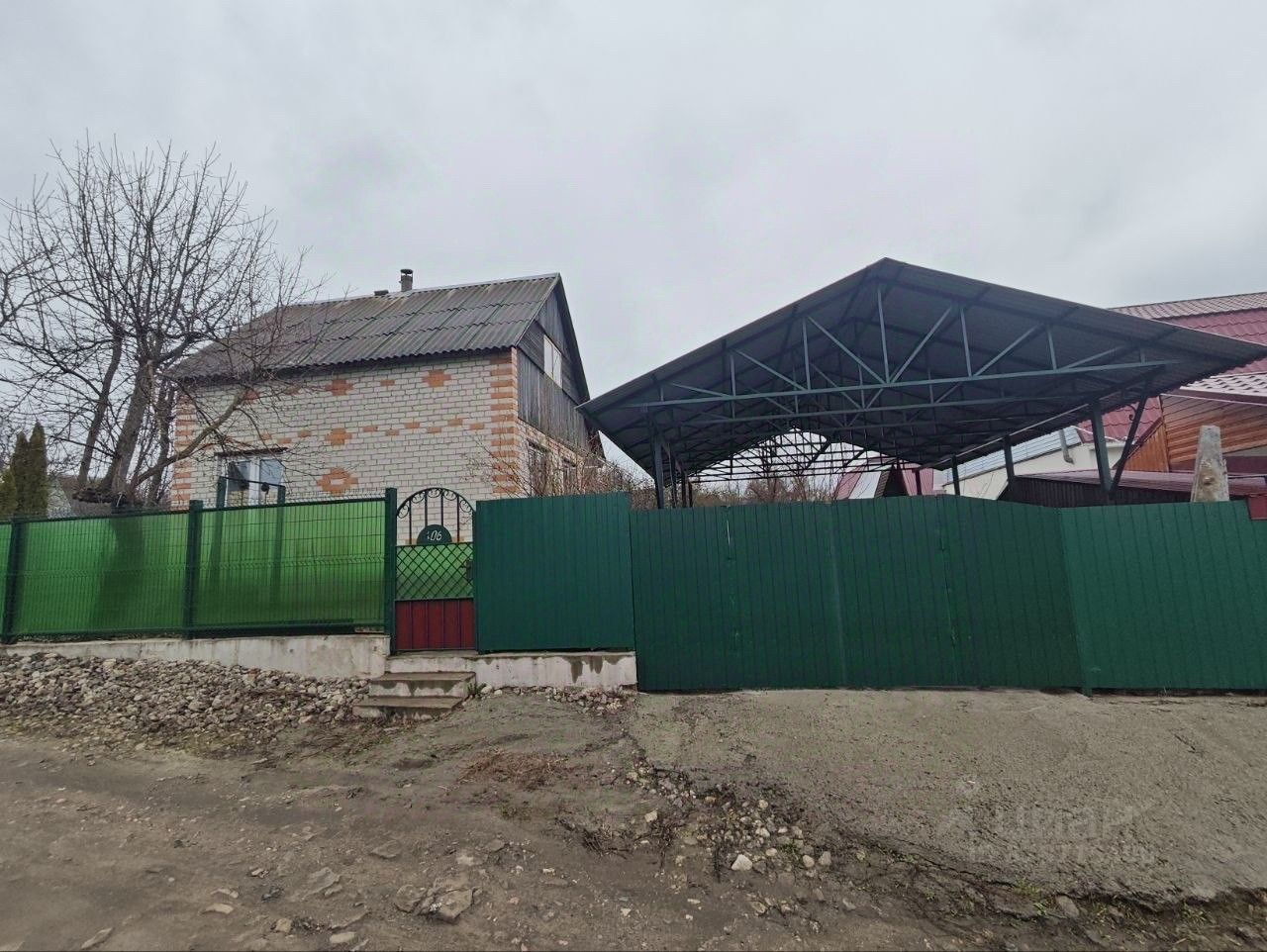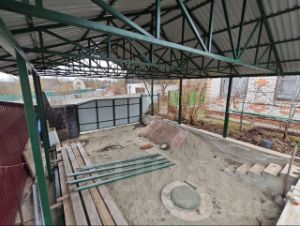 Парковка: Обустроено место под автомобиль с навесом (осталось залить пол).