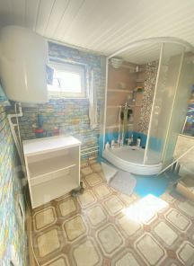 Продаётся жилой дом с участком 8,18 соток в живописном месте. Подъехать к дому можно с двух сторон. Здание из бревна с подведёнными коммуникациями: в дом заведено электричество, есть централизованное водоснабжение, септик, интернет и душевая кабина. По улице проходит газ, отопление электрическое. Участок в собственности, к дому ведёт асфальтированная дорога, удобный карман для автомобиля. В радиусе километра — лесной массив и озеро, школа. До остановки 5 мин, до Второго Брянска 10 мин, есть автобусное сообщение. Идеальная основа для создания своего загородного дома под ваши запросы.
