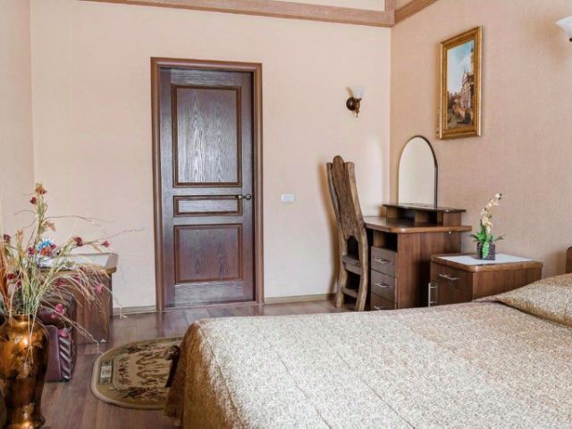 Уютная гостиница на горе правого берега реки Десна. В 590 м находится Свенский Успенский монастырь, в 1 км пляж и Андреевский луг, в 10 км ж/д вокзал Брянск-Орловский, в 13 км аэропорт Брянск. Гостиница имеет особенную концепцию и славится своими роскошными интерьерами и интересным колоритом. Кованые элементы, массивные деревянные двери, необыкновенно красивые пейзажи в старинных багетах, традиционные русские узоры. Каждый номер в гостинице это неповторимое сочетание современной функциональности с присущим исконно русской архитектуре теплом натуральных материалов. Всего в гостинице 14 номера категорий: Стандарт и Люкс. Каждый номер оснащен: кроватью, телевизором, столом, кондиционером, собственной ванной комнатой с душевой кабиной. Предоставляются туалетно-косметические принадлежности. На первом этаже гостиничного комплекса расположен ресторан, в котором имеется три зала, каждый из которых отличается по размеру, наполненности интерьера и цветовой гамме. В теплое время года работает летнее кафе. Также на территории гостинице есть 7 саун, которые включают в себя: сауну на камнях, турецкую баню, комнату отдыха, бассейн с подсветкой и бильярд. Для бизнес-мероприятий на территории отеля есть конференц-зал, вместительностью до 40 человек. Конференц-зал оборудован всем необходимым для проведения успешного мероприятия. В номере: двуспальная кровать, гардероб, спутниковое TV, wi-fi, кондиционер, телефон, посуда, холодильник, чайник, рабочий стол, фен, душевая кабина, санузел, зубная паста, щетка, гель для душа, шампунь, тапочки, комплект полотенец.